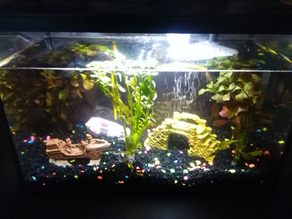 I had the green, then I just needed the water. I bought myself some aquariums, I added the water and some simple decorations and the water would flow from the filter. There wasn’t very much movement of water and I couldn’t really hear it. Then I found a larger tank and decided I would have an underwater garden.