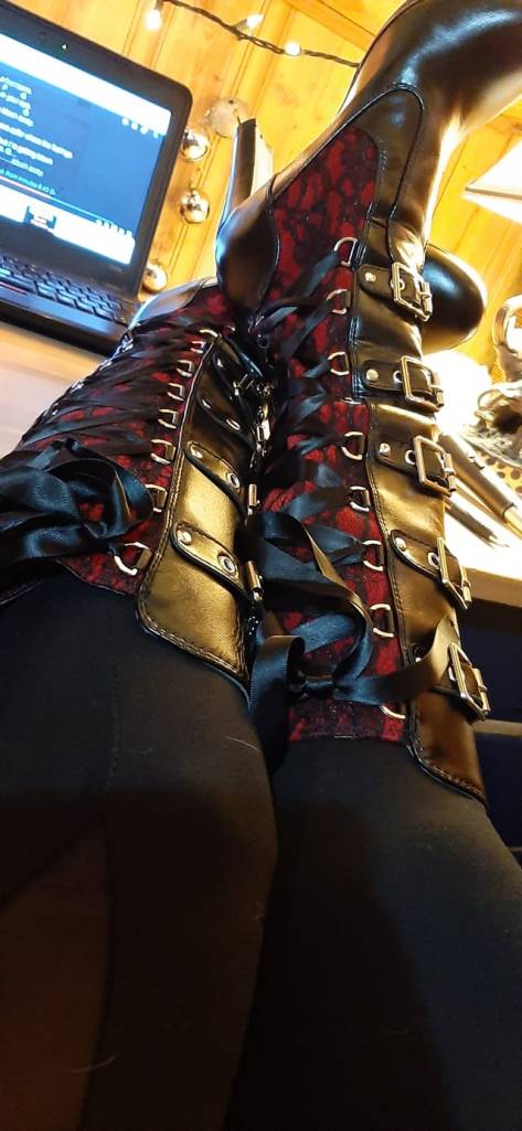 My boots today rocked my world. I got them in the mail today. I got all dressed up for Neil to see. I forget he is tired, coming straight from his job and I bounce in the room and say how do you like?…I am all excited, and honestly, I dont think he even responded after the urgh when I hugged him. I am about 3 inches taller and I don’t think he liked that. So I am having a pout in my office.